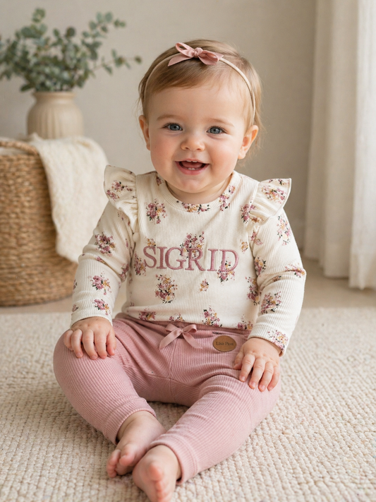 Tröja i ribbad Jersey med ärmvingar och broderat namn