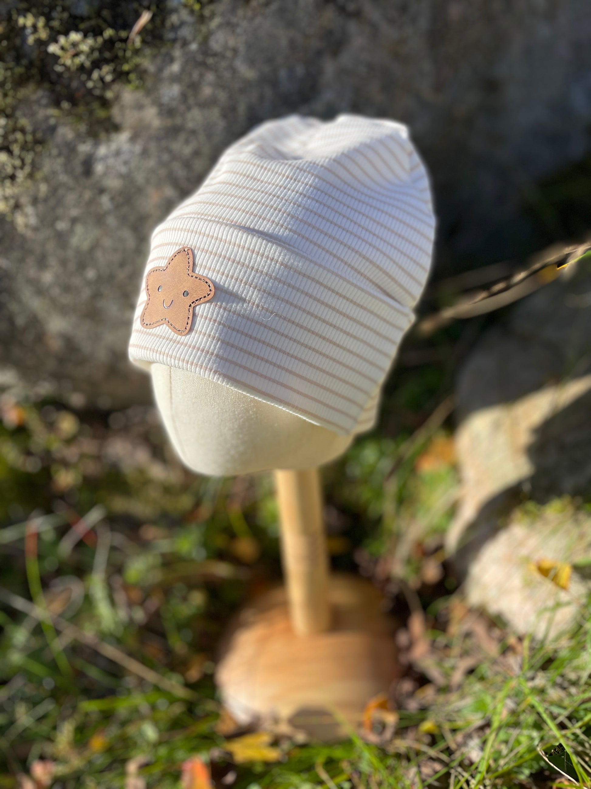 Mössa i mjuk ribbad jersey, med stjärna